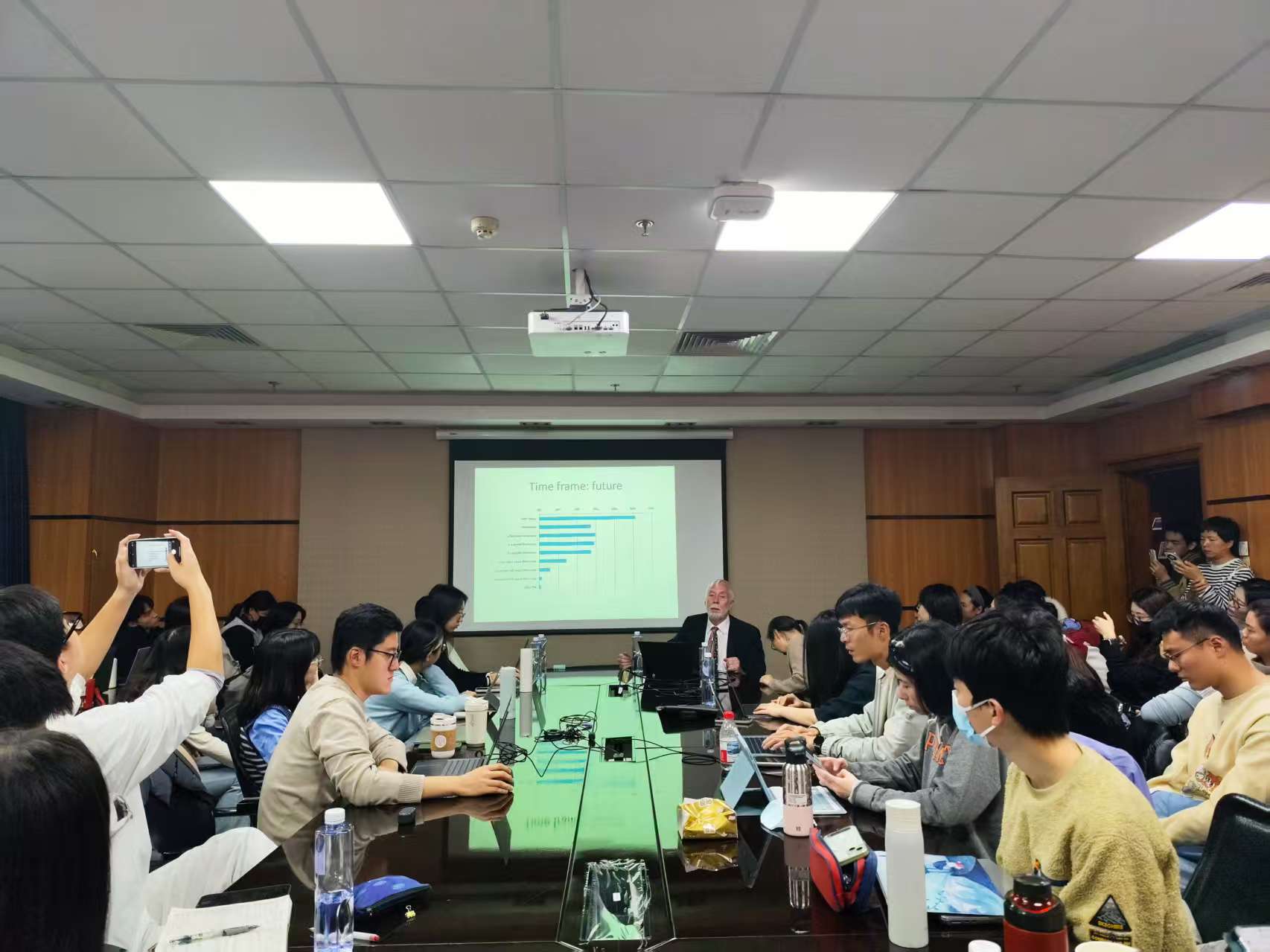 2025年10月22日下午15:30,面向本科生和研究生的第四场讲座在后主楼2026开展,本次主题为 “关于未来的思考:是否、何时、为何、如何、何人、何事……以及那又怎样?”。 Baumeister教授提出,人类意识的独特能力在于能够模拟多种未来场景,这一过程被称为“务实前瞻”(pragmatic prospection)。他强调,未来并非单一注定的结局,而是一个充满可能性的“矩阵”,人们对未来的思考主要目的并非精准预测,而是规划行动、评估选择后果,并为潜在挑战做好准备。实验发现个体在思考未来时更倾向于关注潜在威胁,这种机制虽有助于规避风险,但过度使用可能限制探索与创新。