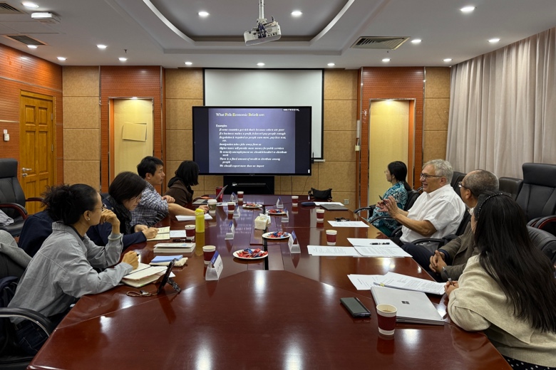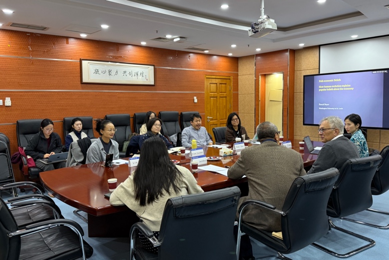 2025年10月18日上午,美国人文与科学院院士、圣路易斯华盛顿大学亨利·卢斯讲席教授Pascal Boyer教授与华盛顿大学(西雅图)许晶研究员受邀到访北京师范大学社会学院,开展学术交流活动。本次交流以“民间经济信念(Folk-economic beliefs,FEBs)”为核心议题,由北京师范大学社会学院韩俊魁教授主持,北京师范大学心理学部教授薛贵、中国社会科学院社会学所副研究员林红、中国社会科学院大学新闻传播学院讲师苏春艳、北京师范大学社会学院教授肖索未、北京师范大学社会学院副教授杨丽及学院学生代表齐聚现场,围绕人类学、经济学以及心理学的交叉研究展开深入探讨。