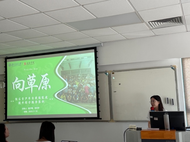 程子桐、李天宇同学以“向草原——牧区青少年自我效能感提升综合服务案例”为题,介绍了项目自2021年起在内蒙古奈曼旗开展的实践,综合运用个案、小组与社区等多种专业方法,通过优势赋能、心理支持与资源链接,支持牧区青少年的自我成长与能力提升。