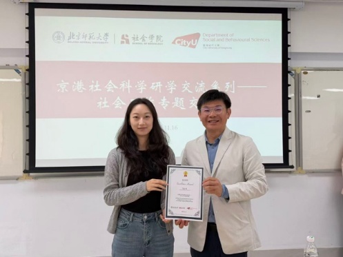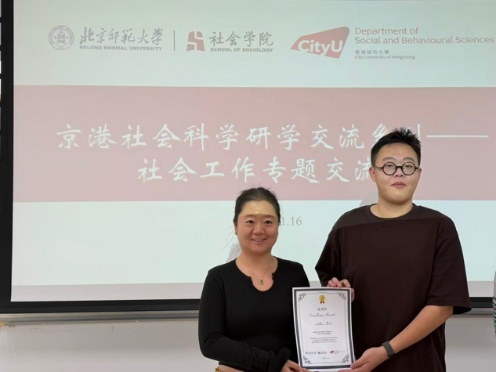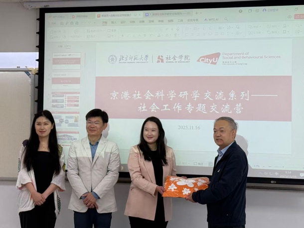2025年11月16日9:00—11:30,由北京师范大学社会学院主办的“京港社会科学研学交流系列——社会工作专题交流营”在珠海校区励教楼E206顺利举行。本次活动由北京师范大学社会学院院长屈智勇教授莅临指导,北京师范大学社会学院副教授、博士生导师付媛媛主持。香港城市大学社会与行为科学系助理教授、博士生导师沈希恩及教学顾问吴国雄应邀参加。来自两校的师生围绕社会工作主题展开了深入交流与探讨。