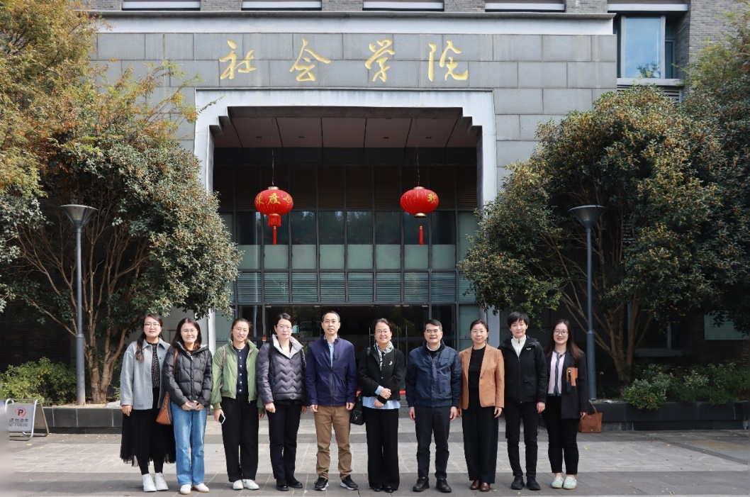 为深入学习贯彻党的二十届四中全会精神,科学编制学院“十五五”发展规划,学习借鉴兄弟院系治学理教先进经验,11月4日,北京师范大学社会学院党委书记徐蕾一行赴南京大学社会学院开展调研。南大社会学院党委书记王建富、院长吴愈晓、社会工作与社会政策系副系主任田蓉、党委秘书张天泽、人事秘书胡爱迪,北师大社会学院党委书记徐蕾,副教授杜静元、高嘉敏、苗芃,院长助理李晓倩(挂职)参加会议,会议由王建富主持。