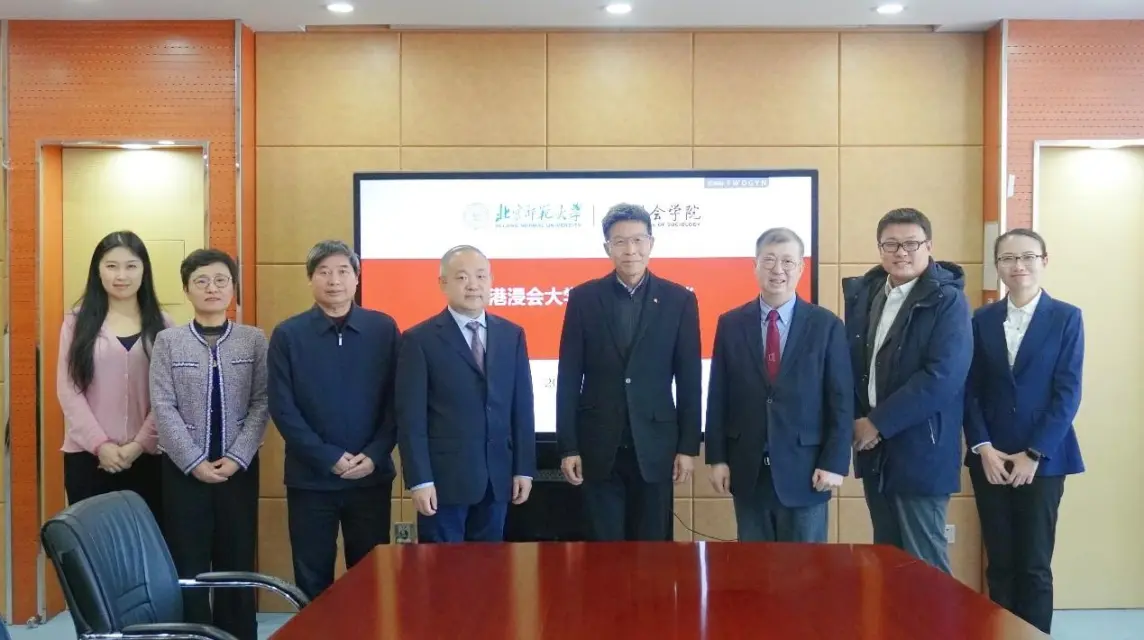 2025年12月30日下午,北京师范大学社会学院与香港浸会大学交流座谈会在北京师范大学后主楼举行。香港浸会大学副校长周伟立教授、文学及社会科学院院长黎永亮教授一行来访,北京师范大学社会学院院长屈智勇教授、副院长尹栾玉教授、非物质文化遗产系主任肖放教授、付媛媛副教授,以及国际交流与合作处港澳台事务办公室刘涛副主任、杜思璇老师出席座谈。会议围绕学生培养、科研合作、学科建设等议题展开深入交流。