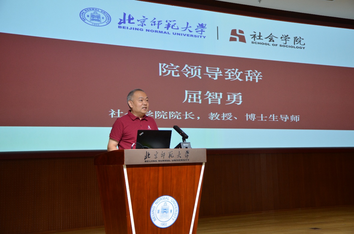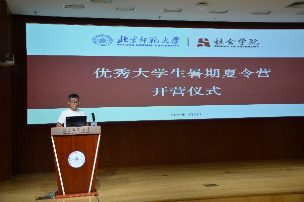 7月8日上午,夏令营开营仪式在京师学堂举行。首先,社会学院院长屈智勇教授在开营仪式上作欢迎致辞。屈院长介绍了学院深厚学术根脉与十年发展历程,展现学院在教学培养体系、师资队伍、教学实践等方面的卓越积淀。值此建院十周年之际,本次夏令营精心搭建“认知窗口”“体验空间”“导航站”三维交流平台,为营员铺就融合学术探索与职业思考的成长之路。他强调,在时代变革与学科发展的关键节点,社会学人肩负着特殊使命,殷切期待营员们成为主动探索的求知者,于思想碰撞中点燃学术星火;成为真诚联结的同行者,在师友互动中凝聚成长力量;成为有温度的践行者,以深厚学养回应社会需求,以坚定担当投身时代洪流,成长为推动社会进步的栋梁之才,在与社会同行、与时代共振中实现人生价值。随后,社会学院教师高嘉敏进行学院介绍,展示了学院人才培养体系、专业特色、学科建设、学生就业与优秀毕业生等情况。接着,社会学院本科生黄舒静作为营员代表发言,表达了在学院多元包容、和谐共进的氛围中研学实践的深切感受,以及对通过夏令营与各位老师、同学在交流中激荡思维、收获新思的期待。开营仪式由社会学院张维军老师主持。